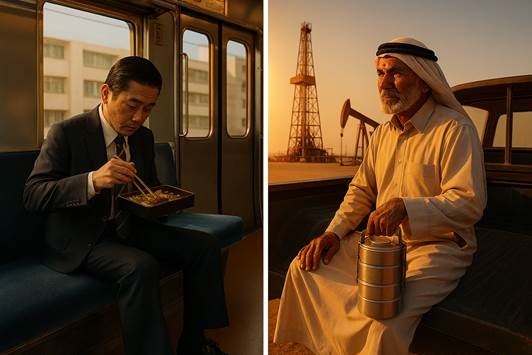 مجرّد تناول “إيكيبين” استدعى إلى خاطري تاريخَ دولة قطر وعاداتَها في الترحال، وأرجعني إلى قصص كان عمّي يرويها عن حاله قبل عقود، حين كان العمال القطريون يستقلّون شاحنات النقل متوجهين إلى حقول النفط في منطقة دخان، حاملين معهم السفرطاس، أوعية السفر اليدوية التي طالما حملت وجبات أعدّتها العائلات. كانت تلك الوجبات تعين العمال على ساعات طويلة من العمل والكدّ تحت شمس الصحراء اللافحة، شأنها شأن وجبات “إيكيبين” اليابانية التي تعين ركّاب السكك الحديدية فائقة السرعة.