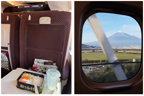 Following the advice of a Japanese colleague, I stopped at the ekiben (train station bento) stalls inside the buzzing station. The bento selection was stunning, which included colorful cold assortments, steaming self-heated boxes, and even playful ones shaped like Shinkansen trains. I grabbed a salmon bento, carefully packed with fresh ingredients. With only minutes to spare, I rushed to the platform and boarded, finding my reserved D-side seat—the best for catching glimpses of Mount Fuji along the way. It seemed to follow the same logic as the train: preparation, balance and neatness.